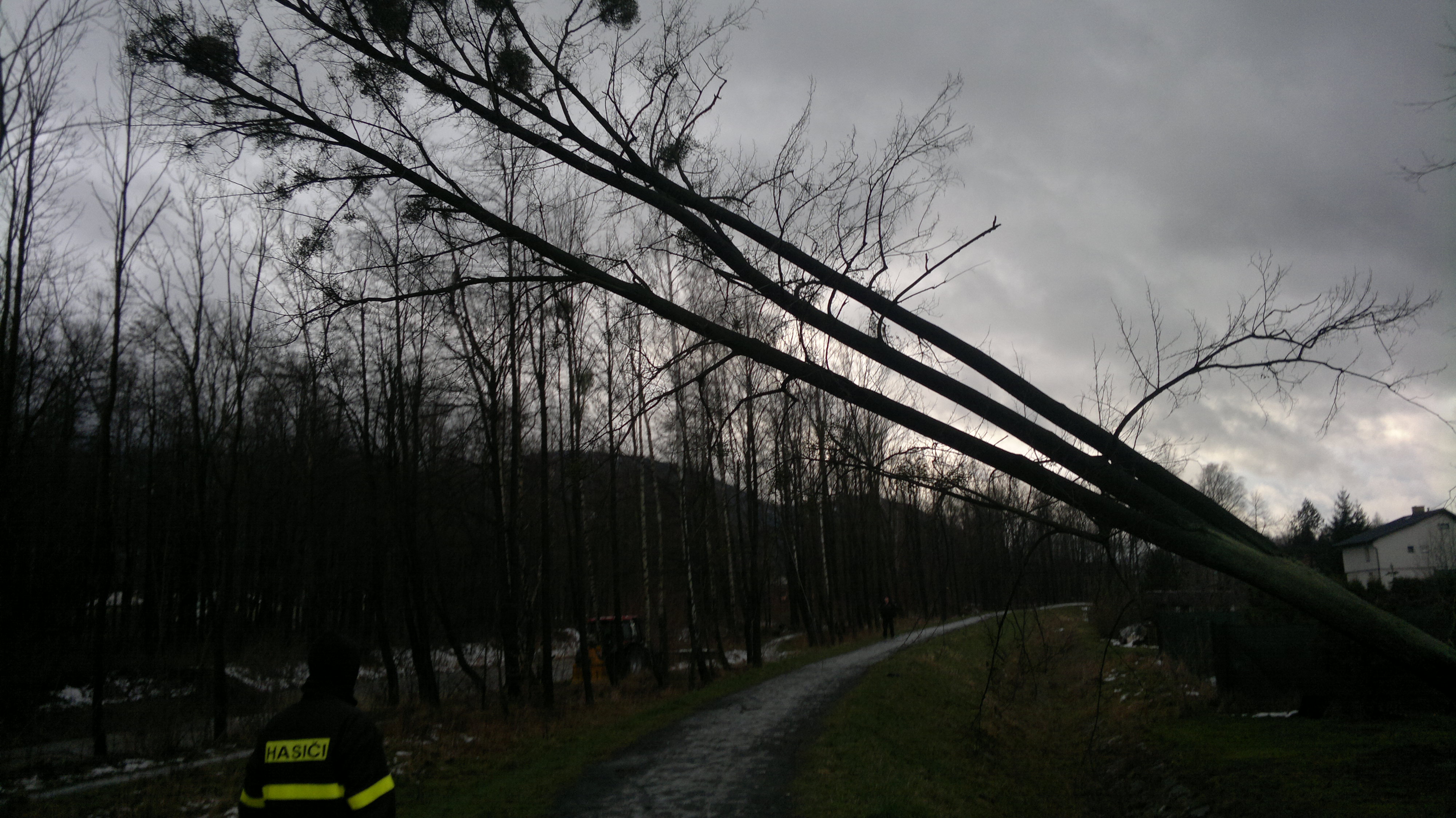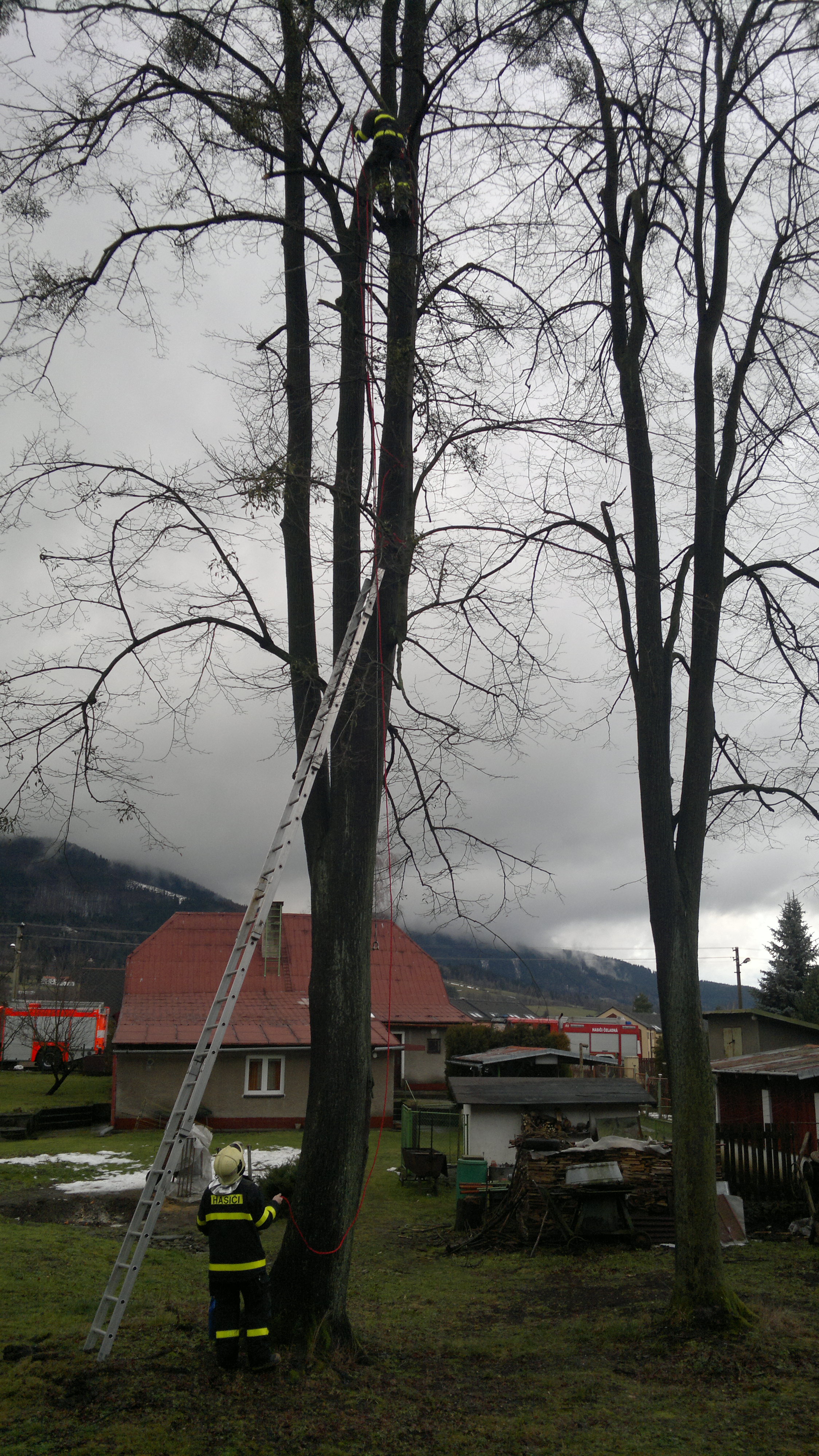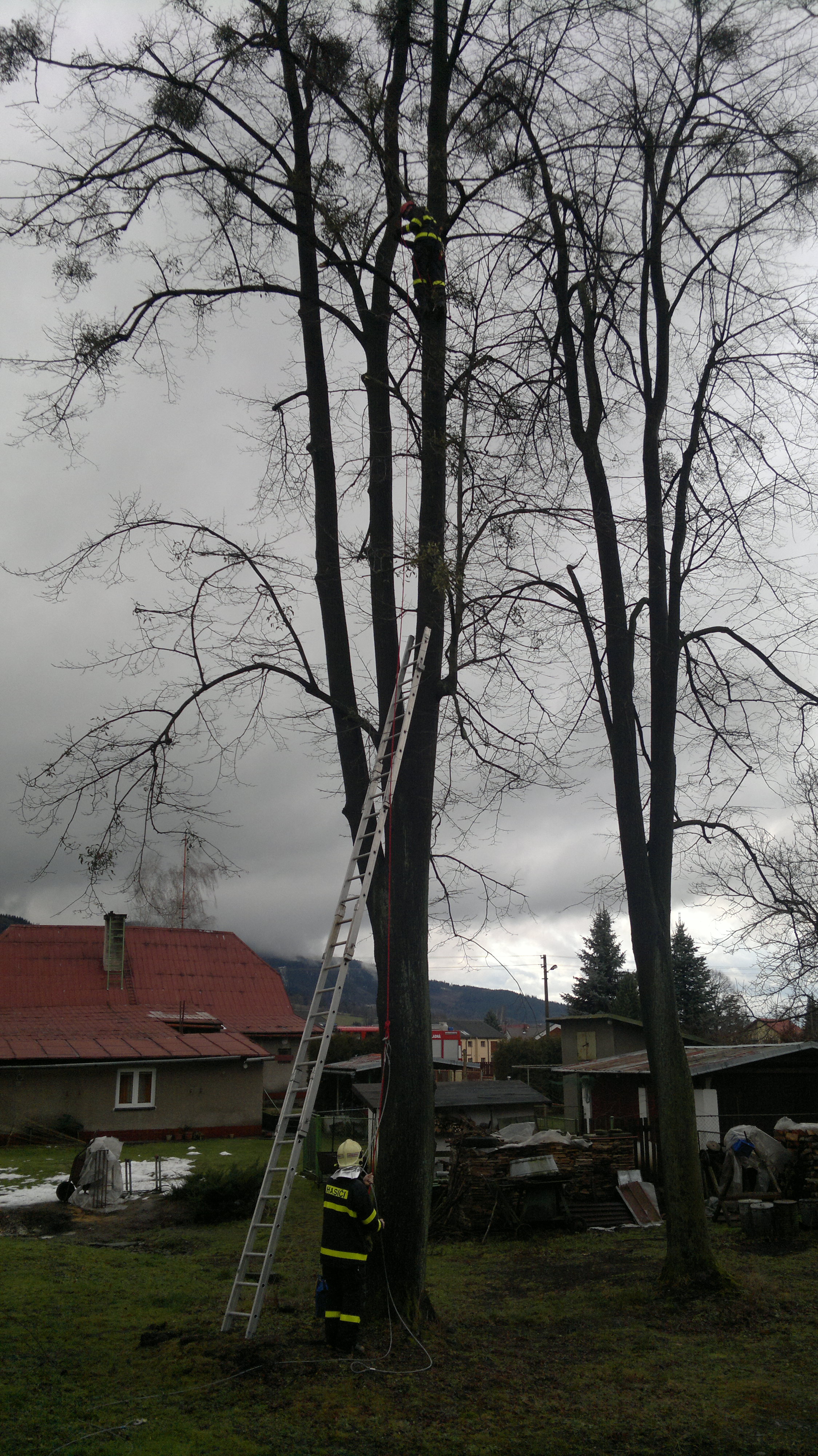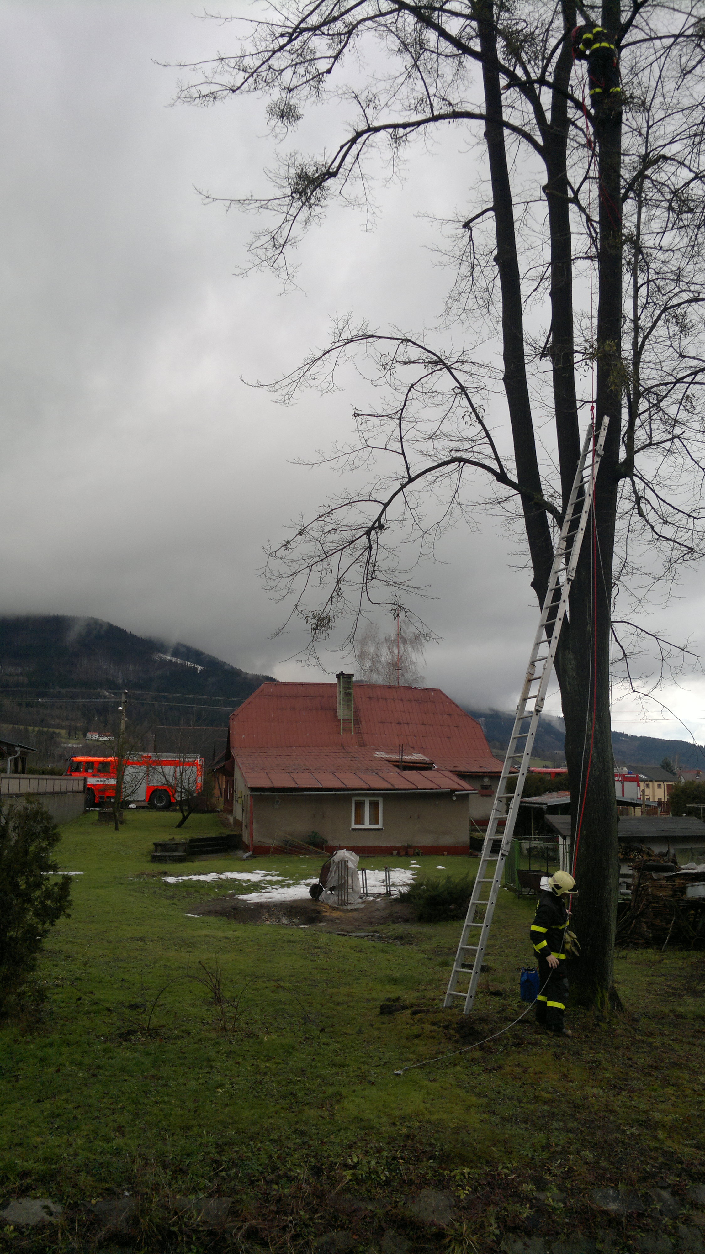Jednotka byla povolána k odstranění nakloněného stromu nad hospodářskou budovu spolu s HZS ČR z Frýdku-Místku |